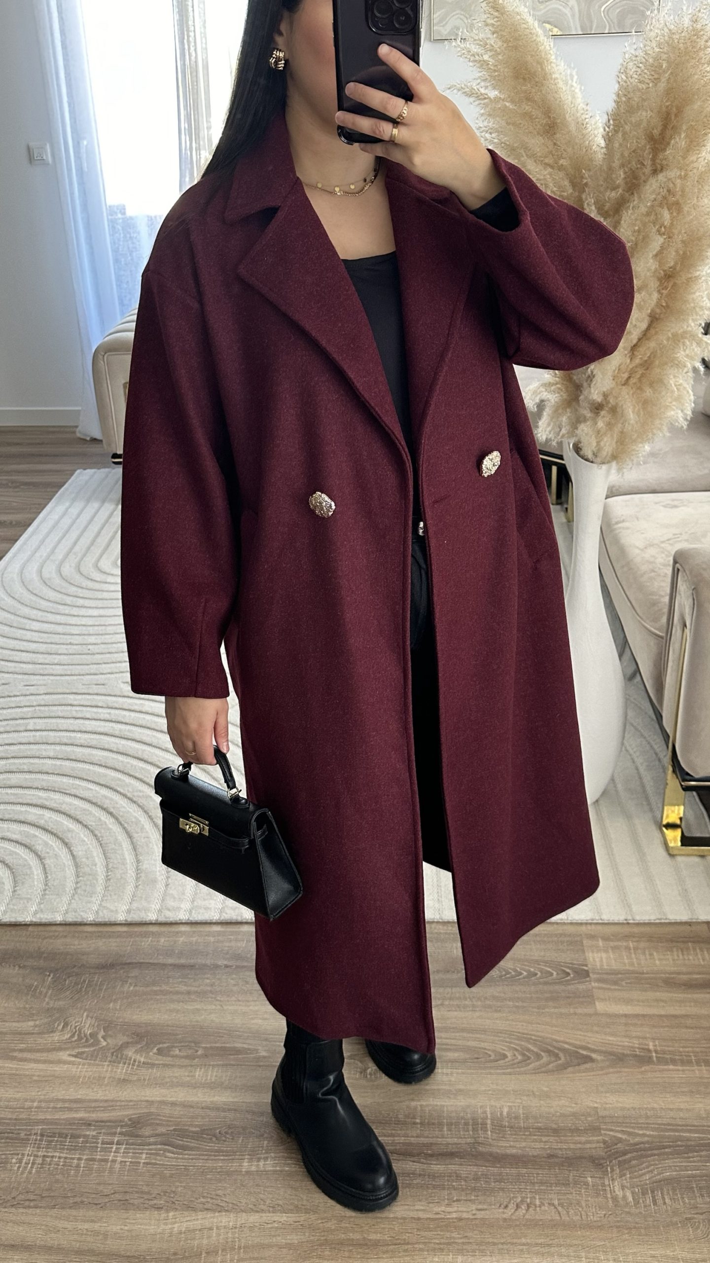 Manteau bouton dorée | bordeaux