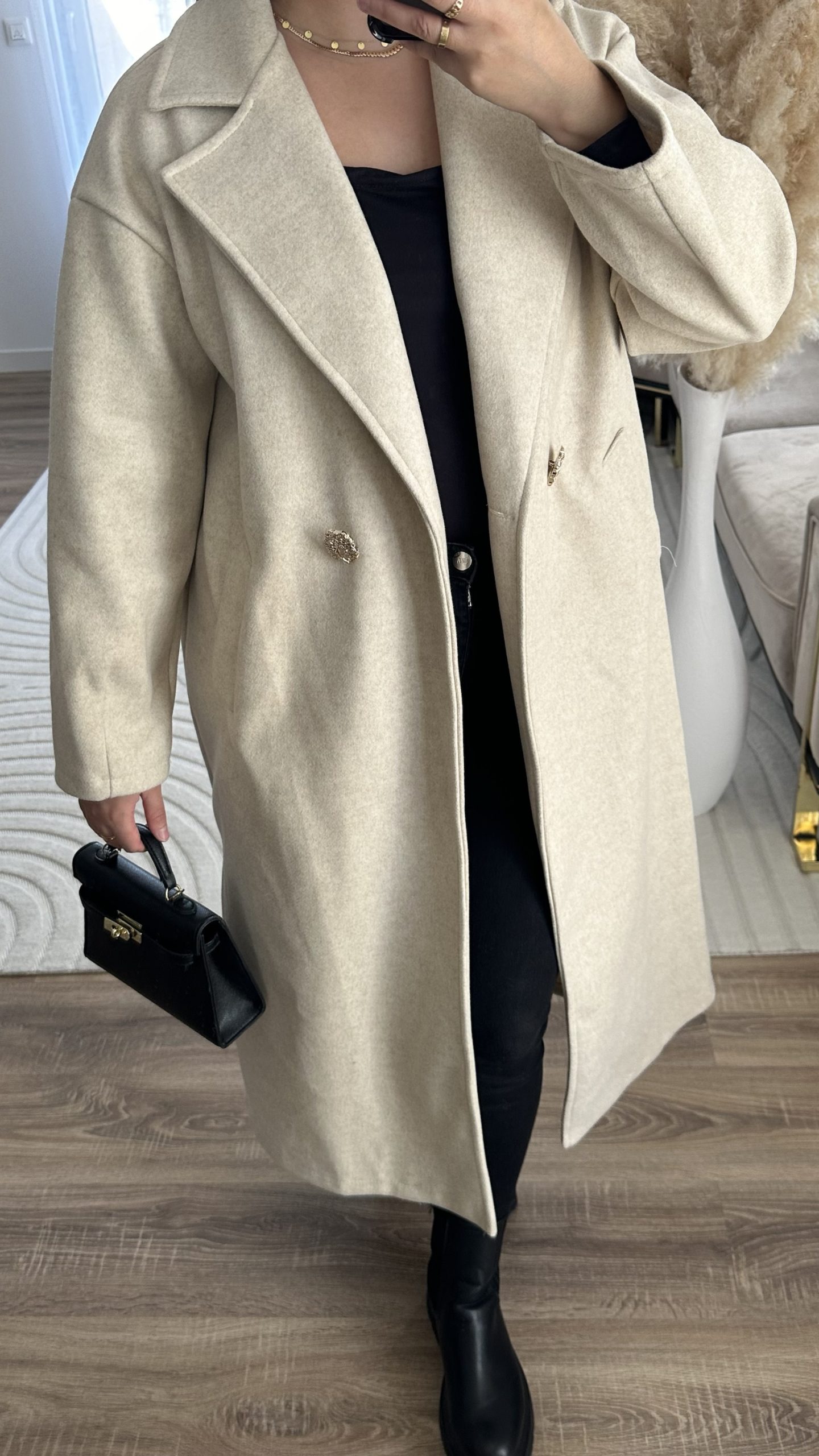 Manteau bouton dorée | beige