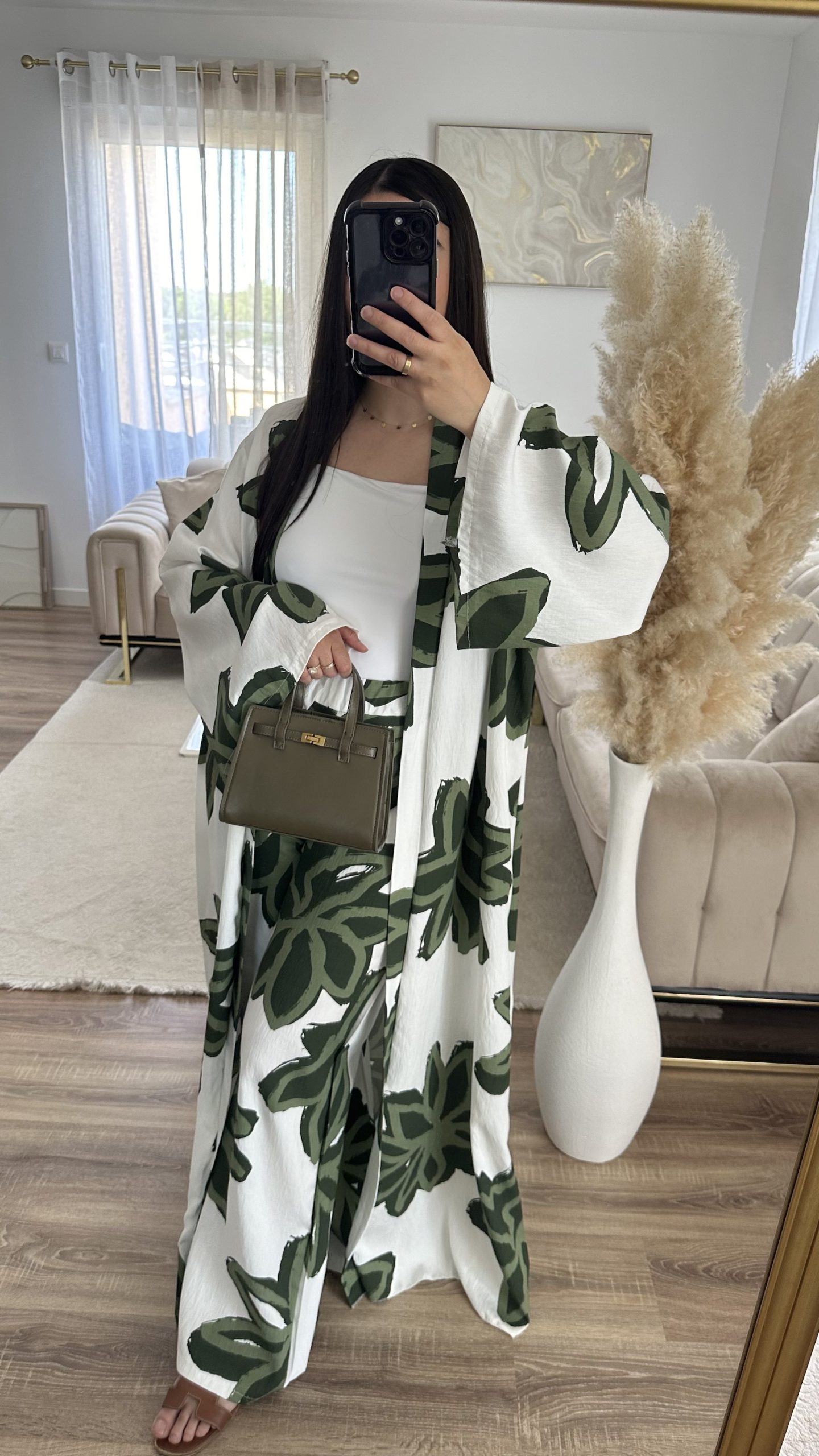 Ensemble kimono et pantalon imprimé | kaki